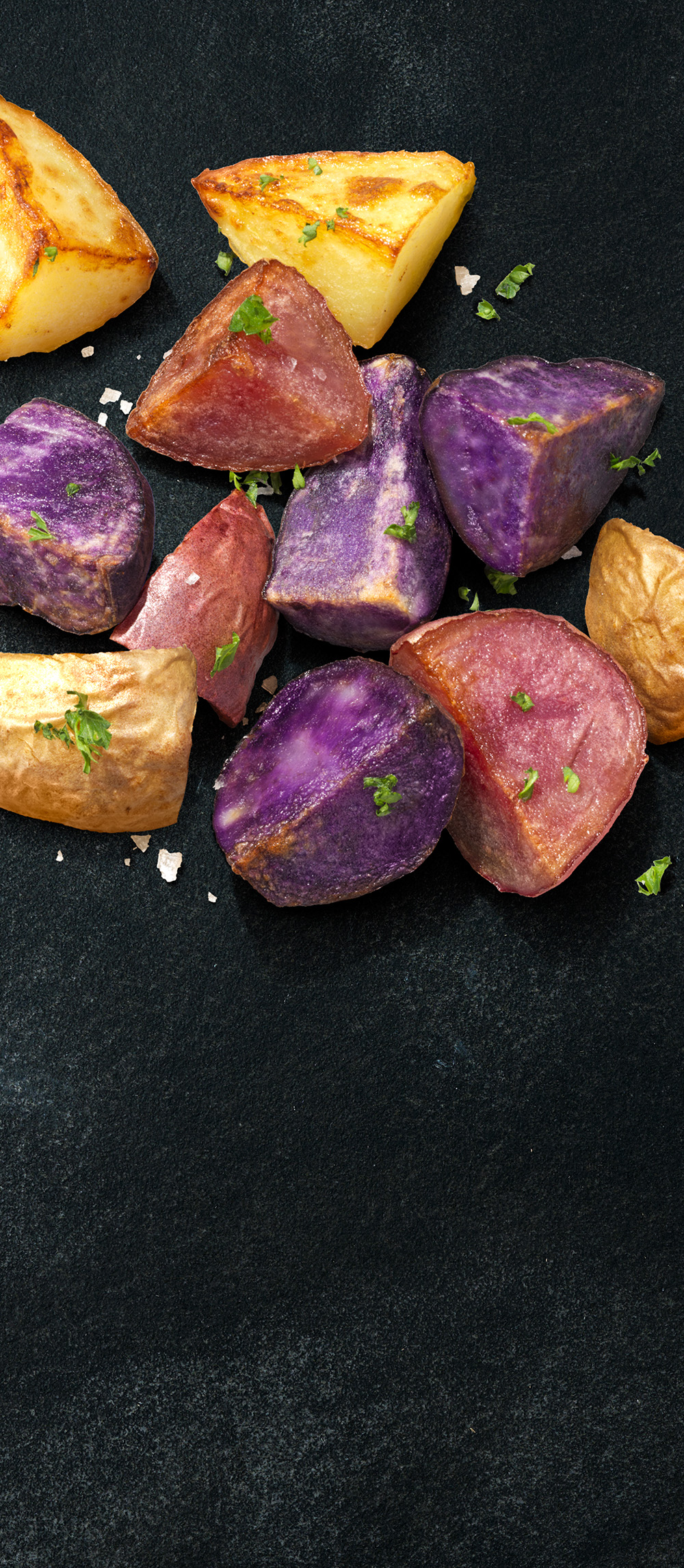 Colour Mix aardappelen zijn ideaal voor in de oven. Maar gewoon bakken kan natuurlijk ook. Hoe dan ook, ze kleuren jouw bord!