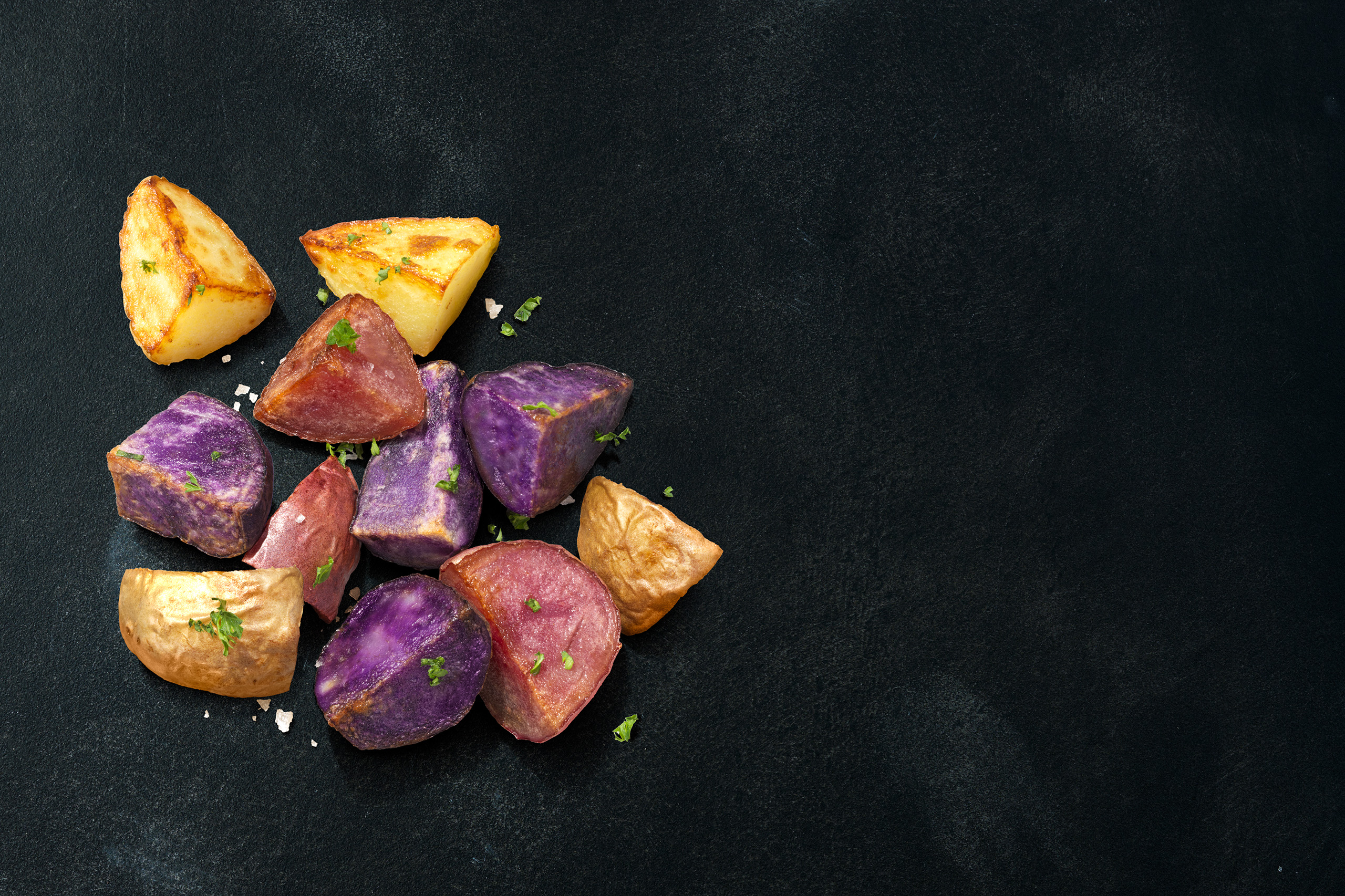 Colour Mix aardappelen zijn ideaal voor in de oven. Maar gewoon bakken kan natuurlijk ook. Hoe dan ook, ze kleuren jouw bord!