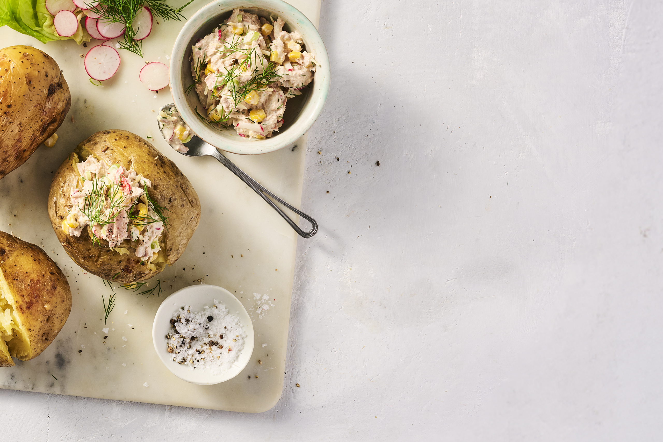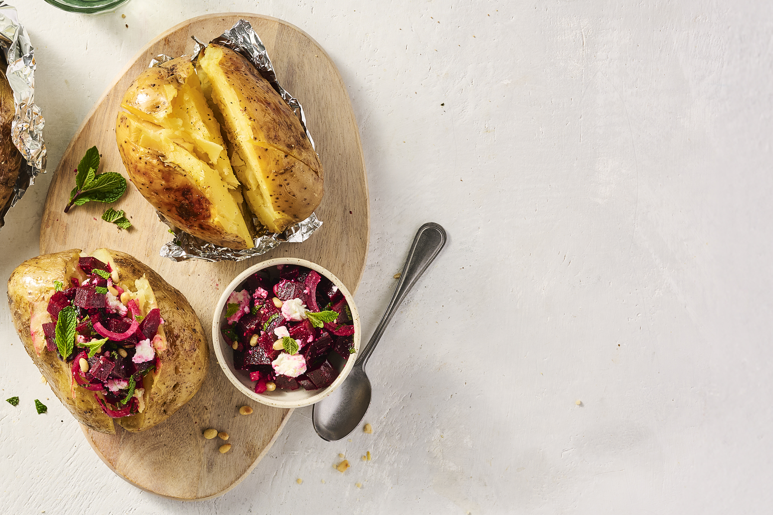 Als ze gaar zijn insnijden en afmaken met je eigen vulling. Deze kan simpel met alleen boter en zout of crème fresh met bieslook, maar je kunt ook jouw eigen heerlijke groenten mix maken. Je kunt hiermee eindeloos variëren.