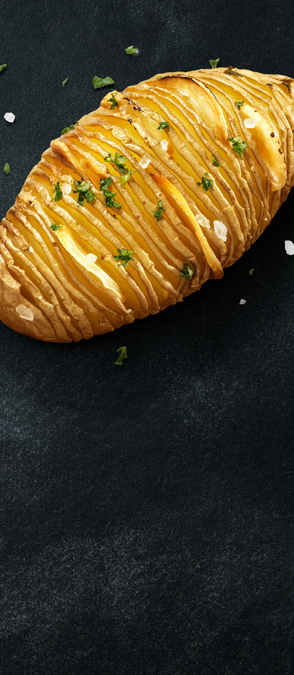Met de Yellow Gold Potatoes uit onze Taste & Colour lijn zijn er oneindig veel manieren om aardappelen nét wat specialer klaar te maken. Neem bijvoorbeeld de klassieker ‘‘Hasselback’’. Dun ingesneden aardappelen uit de oven voor een extra luxe gevoel aan tafel. Knapperig van buiten, zacht vanbinnen.