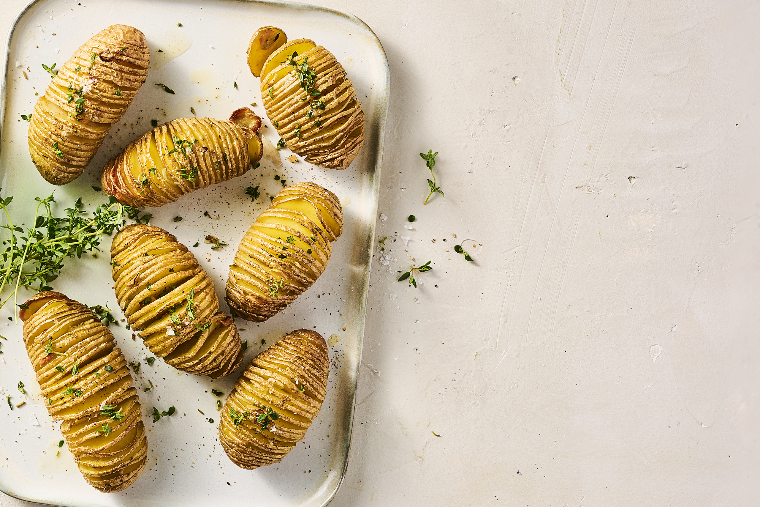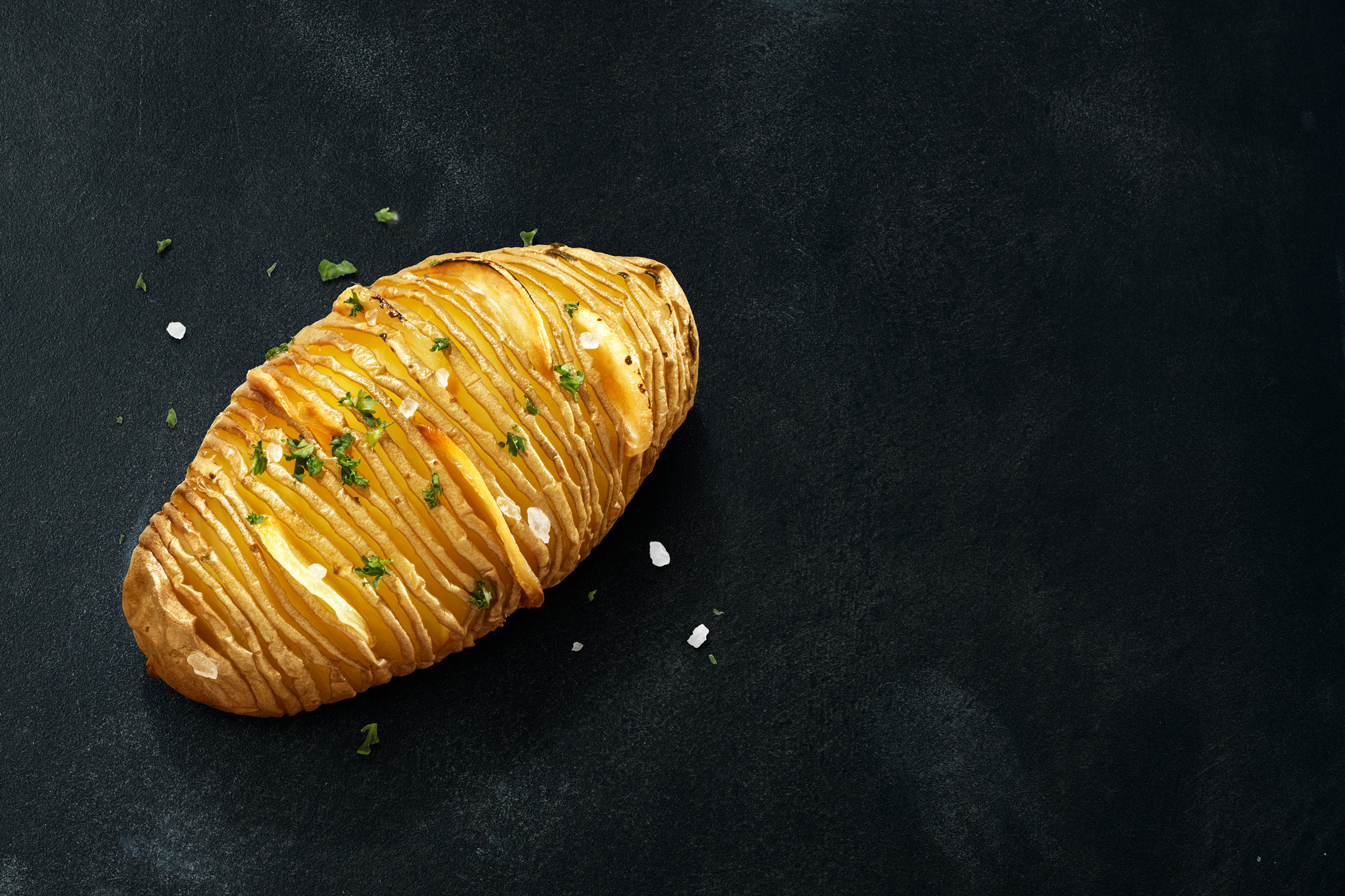 Yellow Gold aardappelen zijn perfect voor in de oven en door hun grootte en vorm ideaal voor het bereiden van Hasselback Potatoes.