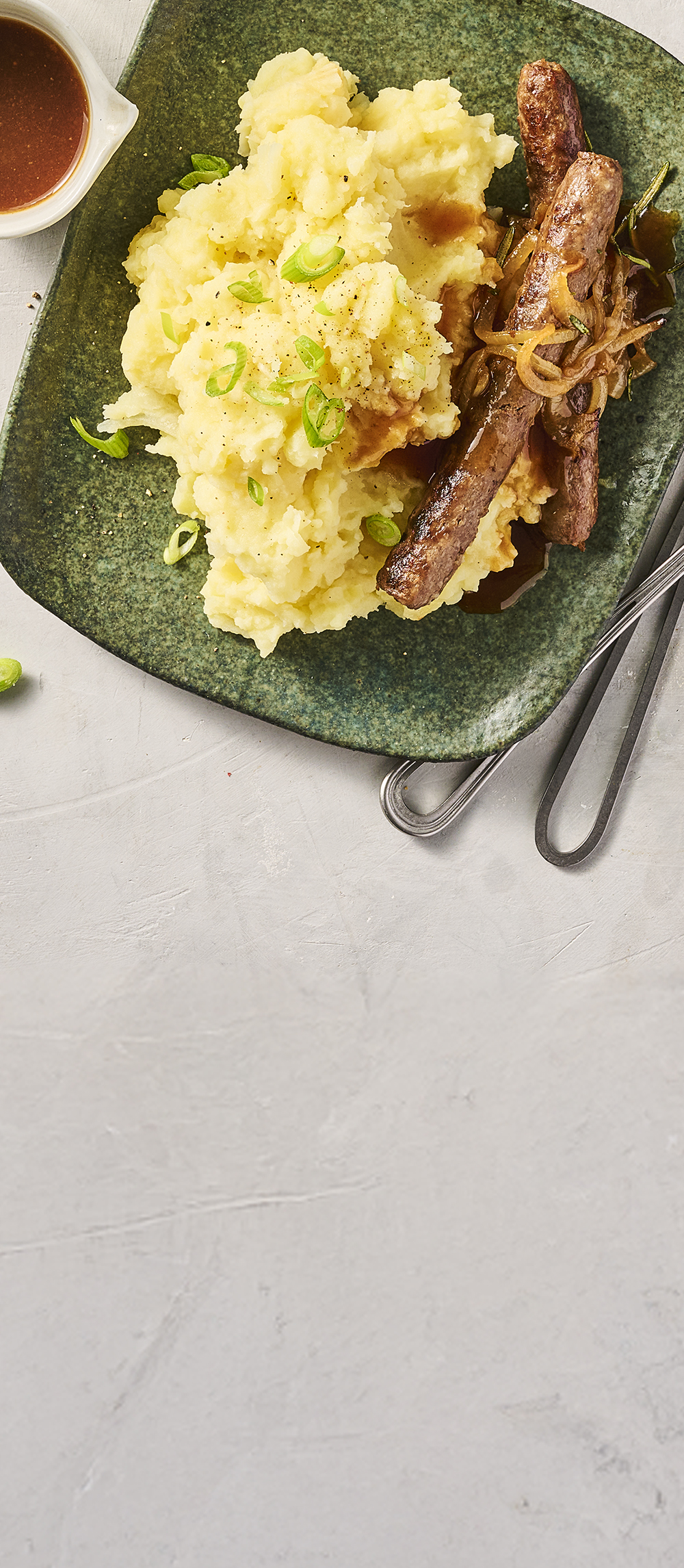 Deze stamppot is heerlijk met gebakken braadworstjes naar keuze en gebakken uien.
